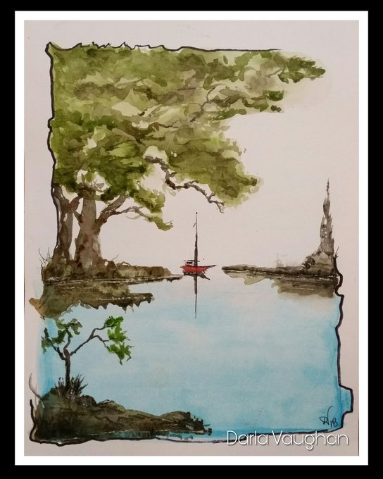 lapping water at the edge under a green swept tree